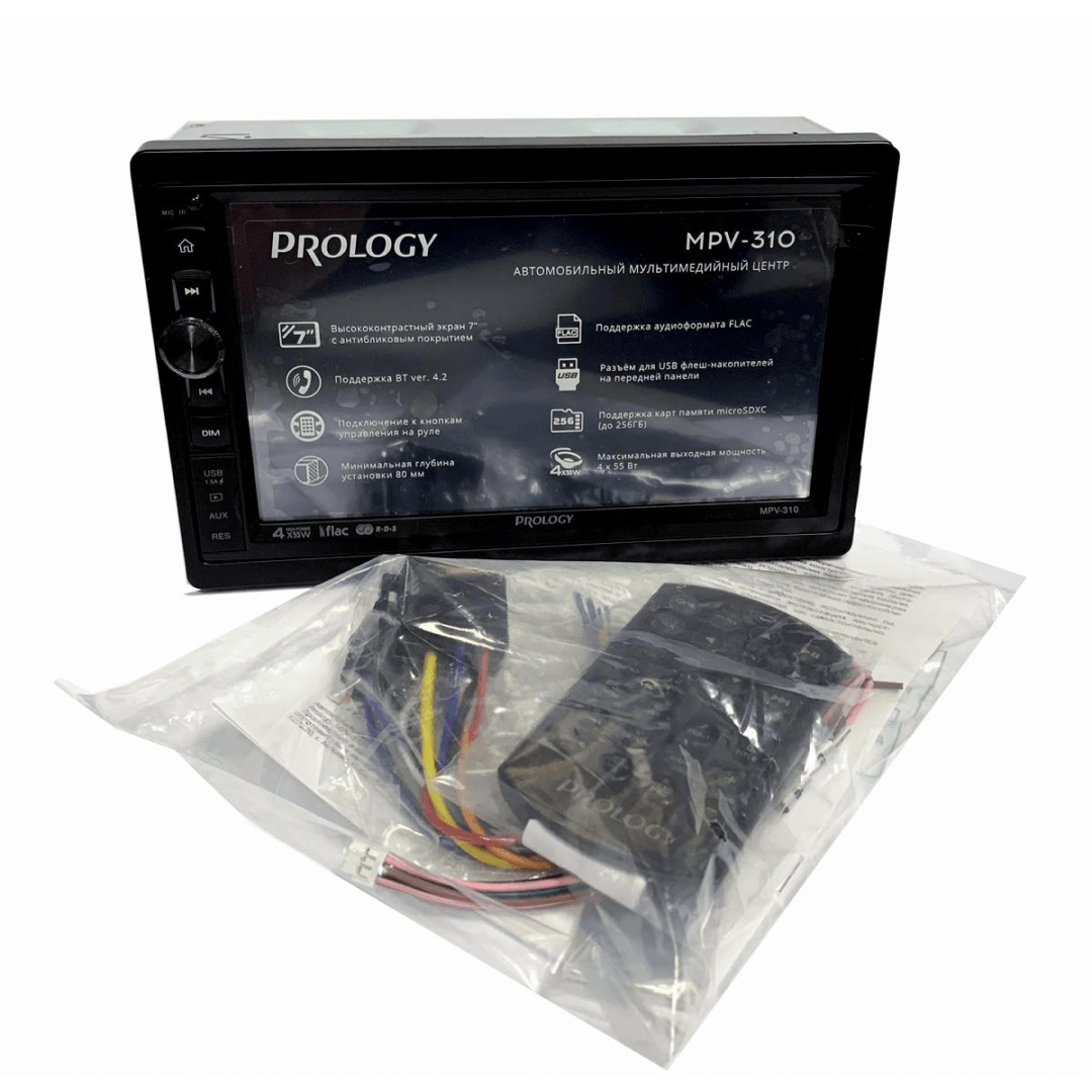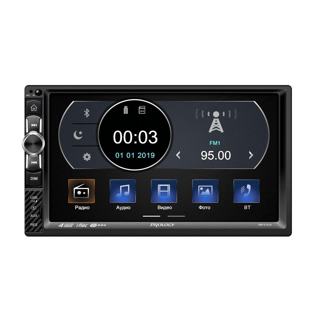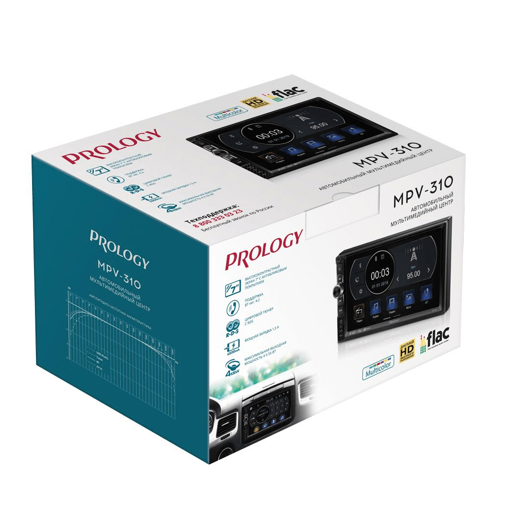 Автомобильный мультимедийный центр PROLOGY MPV-310 монтажного размера 2DIN обеспечивает прием радиостанций в диапазоне FM, воспроизведение медиафайлов, записанных на карты памяти USB / microSD, передачу звука с внешних источников, а также управление мобильным телефоном через интерфейс Bluetooth (version 4.2).
