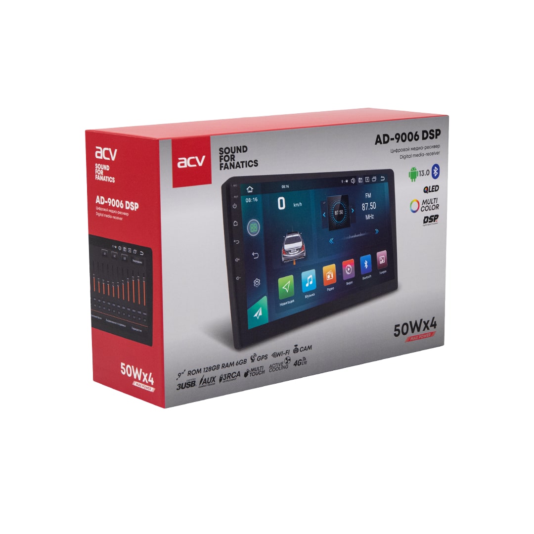 ACV AD-9006DSP (2din/мультимедиа/9"QLED/Android 13/1280*720/6+128Гб/FM/USB/DSP/SD/4*50/BT/GPS/Wi-Fi)