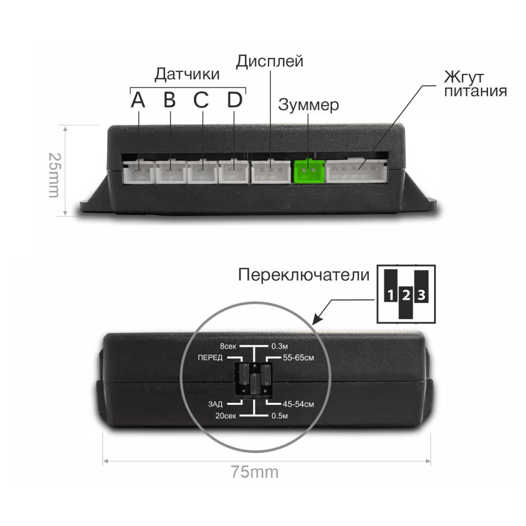 Комплектуется 4 датчиками типа A (установка с внешней стороны бампера) -