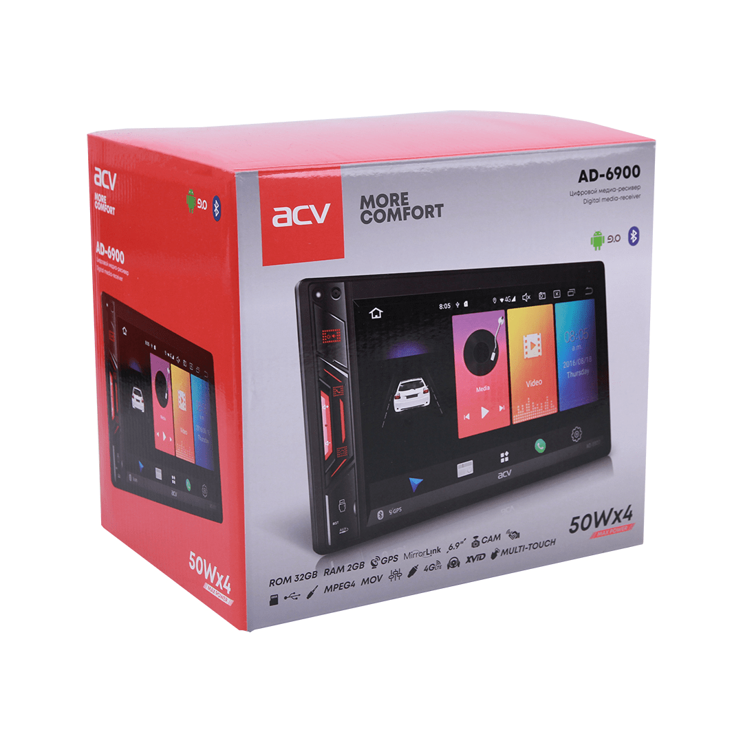 ACV AD-6900 (2din EURO/мультимедиа/6.9"/Android 9/1024*600/2+32Гб/FM/AM/USB/RDS/SD/4*50/BT/GPS/4G)