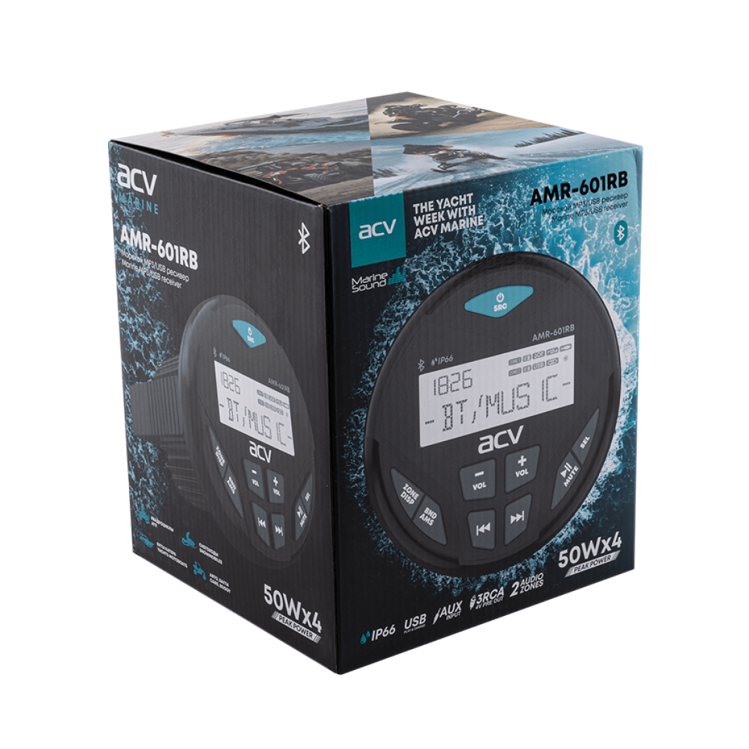 ACV MARINE AMR-601RB морской ресивер круглый/черный/4x50W/BT/USB/SD/FM/AM