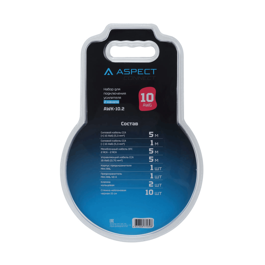 ASPECT-AWK-10.2 комплект проводов для 2х кан.усилителя (омедненный аллюм.)10 AWG,2RCA-2RCA