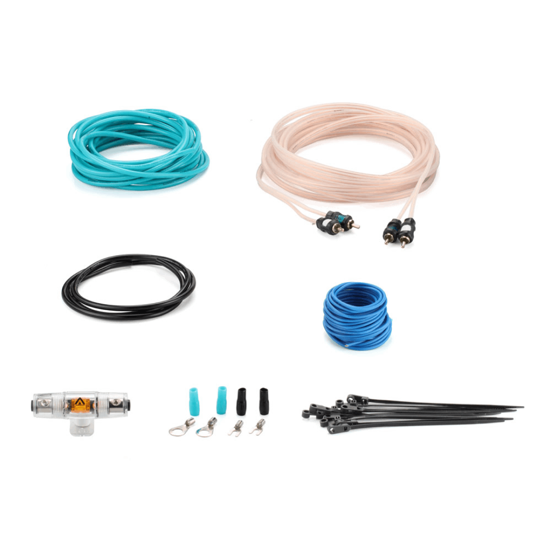 Силовой кабель плюсовой: 10 AWG (5,3 мм2) ультраэластичная изоляция цвета циан, проводники из омедненного алюминия (ССА) - 5 метров