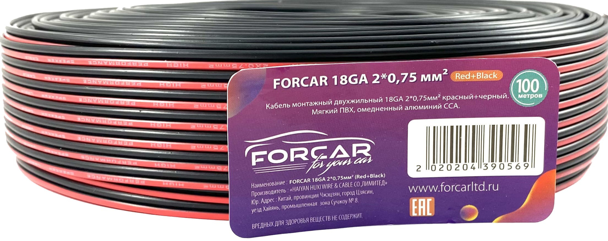 Провод монтажный FORCAR 18 GA 2x0.75 black+red (бухта100м) красн+черн