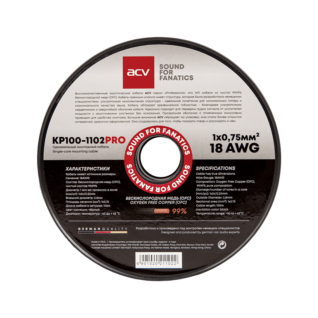 Провод монтажный ACV KP100-1102PRO (1*0,75 черн. 100м.)чистая безкислородная медь