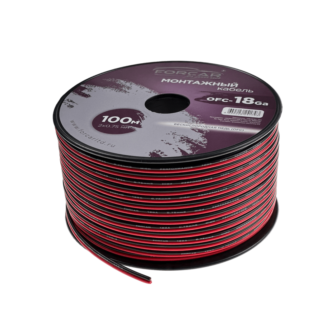 Провод монтажный FORCAR 18 GA 2x0.75 black+red (бухта100м) красн+черн CCA