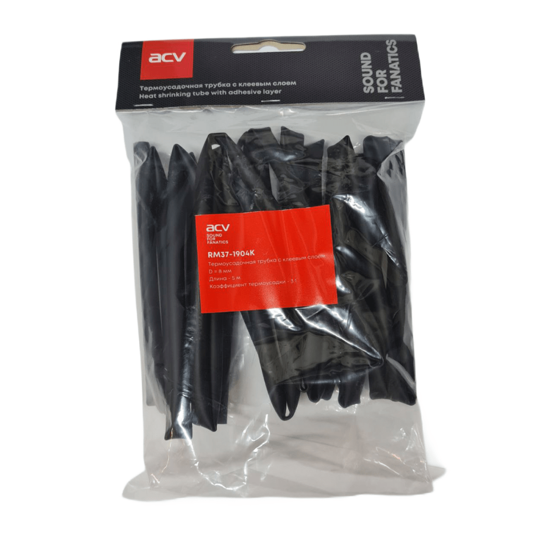 Термоусадка с клеевым слоем 8мм/черная/5м/коэф.термоусадки 3:1 (ACV RM37-1904K)