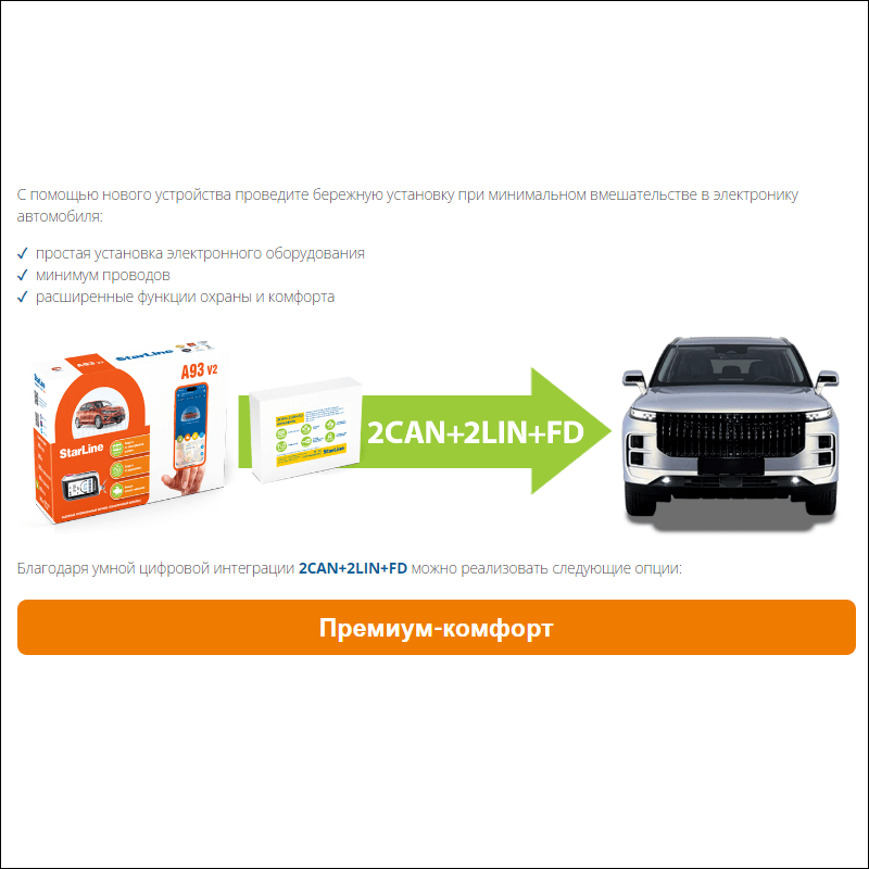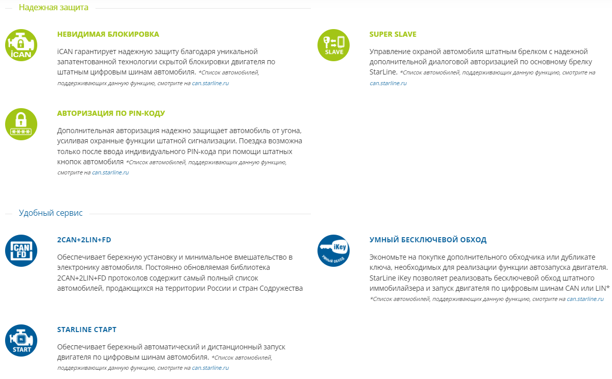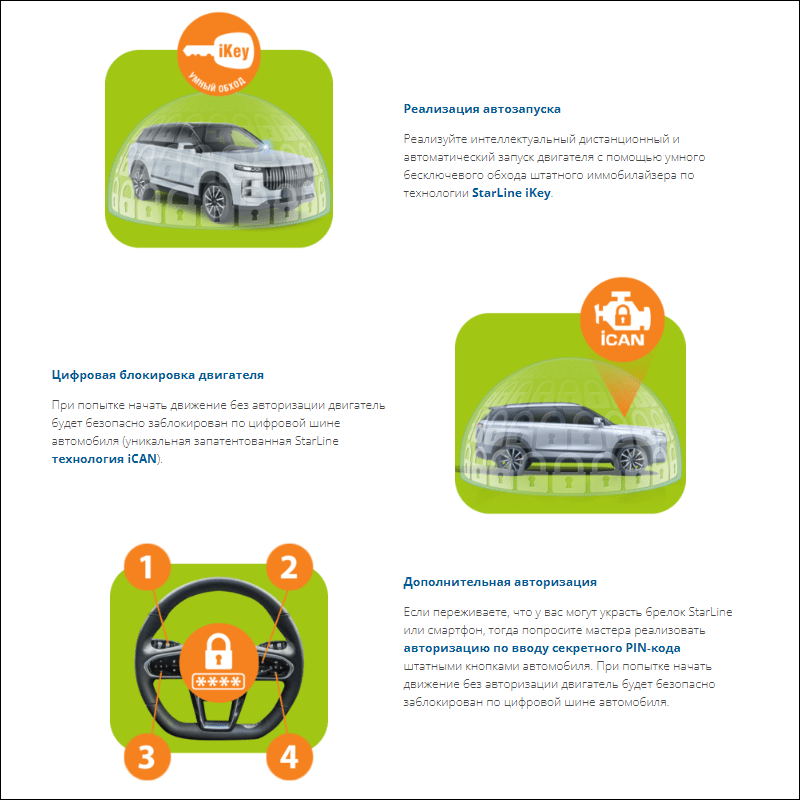 iCAN гарантирует надежную защиту благодаря уникальной запатентованной технологии скрытой блокировки двигателя по штатным цифровым шинам автомобиля. *Список автомобилей, поддерживающих данную функцию, смотрите на can.starline.ru